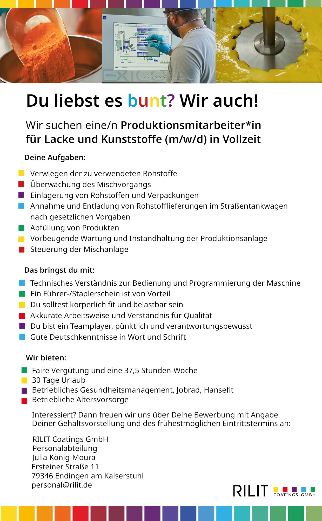 „Seit über 10 Jahren bin ich Teil der RILIT und habe verschiedene Stationen durchlaufen – von der Qualitätssicherung über die stellvertretende Produktionsleitung bis hin zur Einkaufsleitung im Jahr 2024. Durch Weiterbildungen zum IHK-Qualitätsprüfer, Technischen Fachwirt und Lean-Manager konnte ich mein Fachwissen stetig erweitern. Ich schätze die vertrauensvolle Zusammenarbeit und die kontinuierliche Unterstützung von RILIT auf meinem Weg hier in der Firma.“